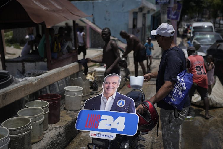 La señal de apoyo a los presidentes dominicanos que elige a Luis Abinader robó una motocicleta en el vecindario en Los Glandulama Santo Domingo, República Dominicana, en mayo de 2024. años. (AP Photo / Matias Delacroik) Dirigir a las mujeres embarazadas no es nueva
