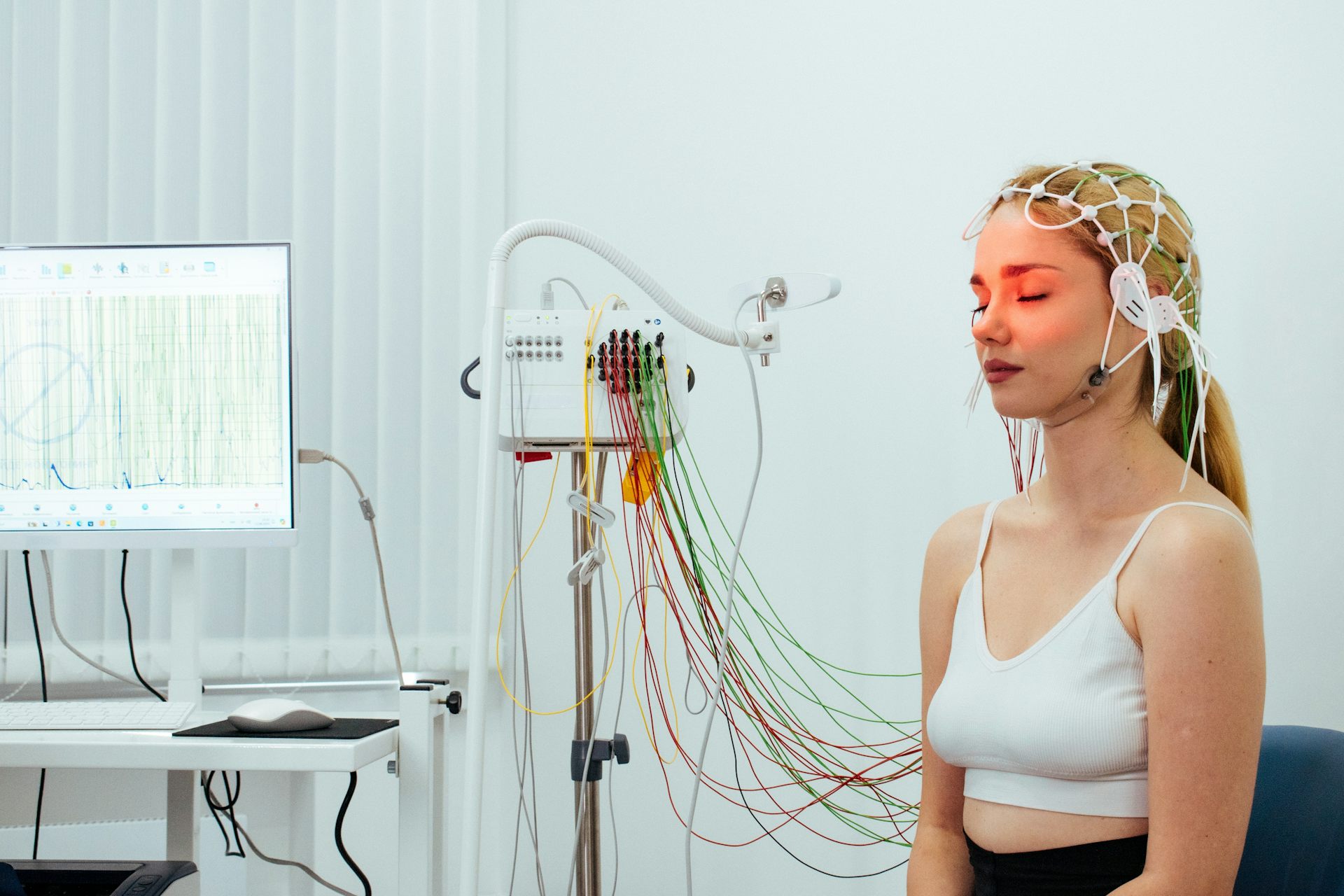 El propósito de la electroencefalografía es registrar pequeñas señales eléctricas generadas por las neuronas. Para hacer esto, se colocan electrodos pequeños en el cuero cabelludo después de un sistema estandarizado llamado "10-20". Este método asegura que diferentes áreas del cerebro estén bien cubiertas.