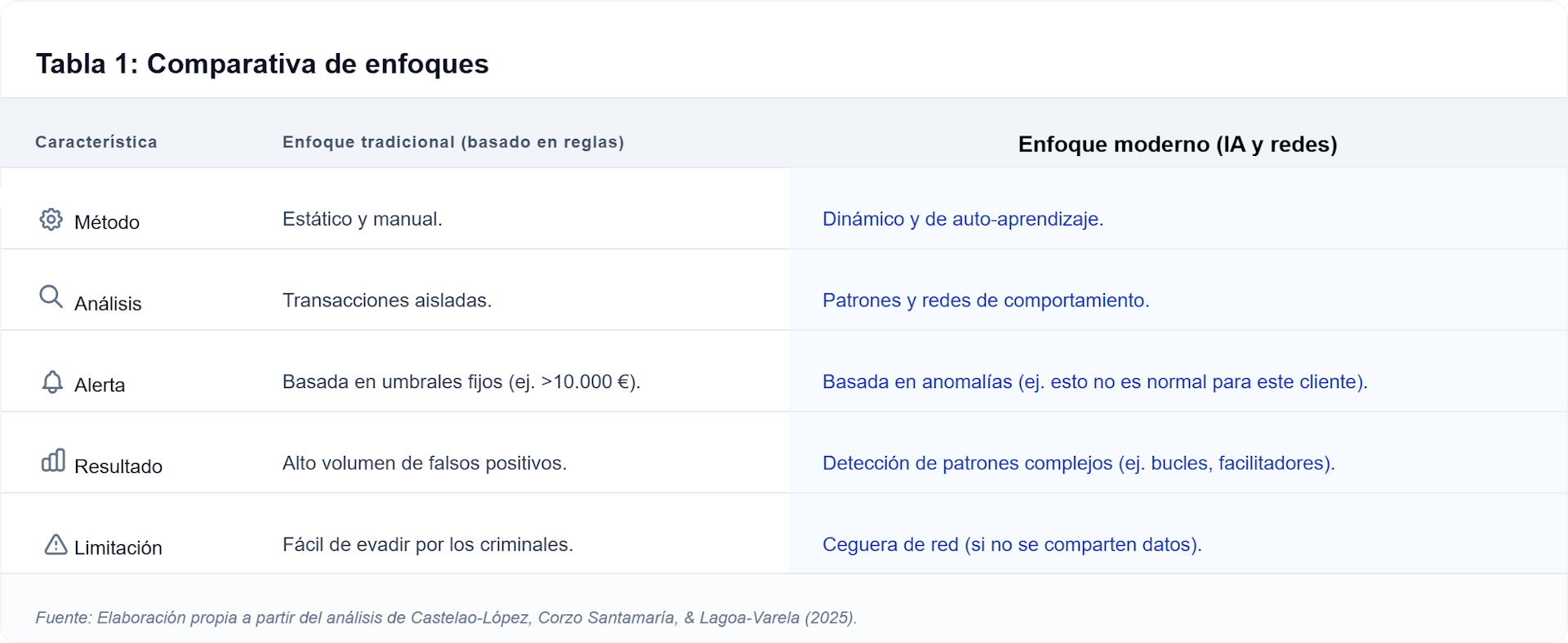 Hasta hace poco, la administración pública obligaba a los bancos y otras entidades a utilizar sistemas basados en reglas. Eran simples: si una transacción superaba los 10.000 euros, se marcaba. Si una cuenta recibía repentinamente 50 transferencias pequeñas, se marcaba.