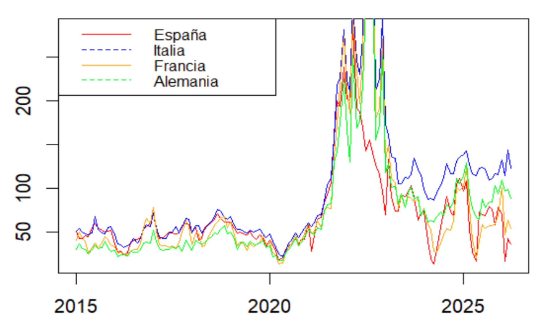 El uso de múltiples plantas de ciclo combinado para reducir el riesgo de otro apagón tiene un costo. La propia Redeia lo cuantifica en un 4,7% a un precio medio de 77,07 euros/MWh, donde se obtiene el precio global anterior de 666 millones de euros. Quizás más relevante que este efecto directo sea la perspectiva de largo plazo de la evolución del precio de la electricidad, que recientemente ha estado marcada por la guerra en Ucrania y las reacciones que produjo en cada país, provocando una gran dispersión de precios de las cuatro mayores economías de la Unión Europea.
